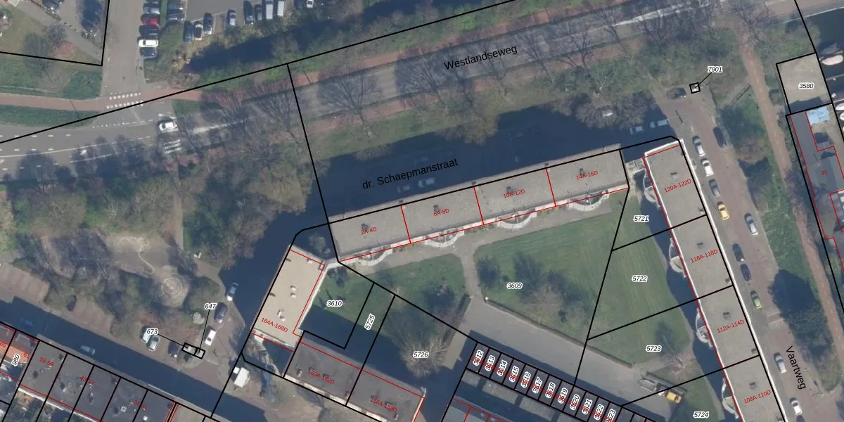 dr. Schaepmanstraat 6-B is gelegen op kadastraal perceel VDG00D3609. Deze kadastrale aanduiding is uniek en wordt gebruikt door het Kadaster om eigendomsrechten en andere zakelijke rechten vast te leggen. Het perceel maakt onderdeel uit van de kadastrale gemeente Vlaardingen.