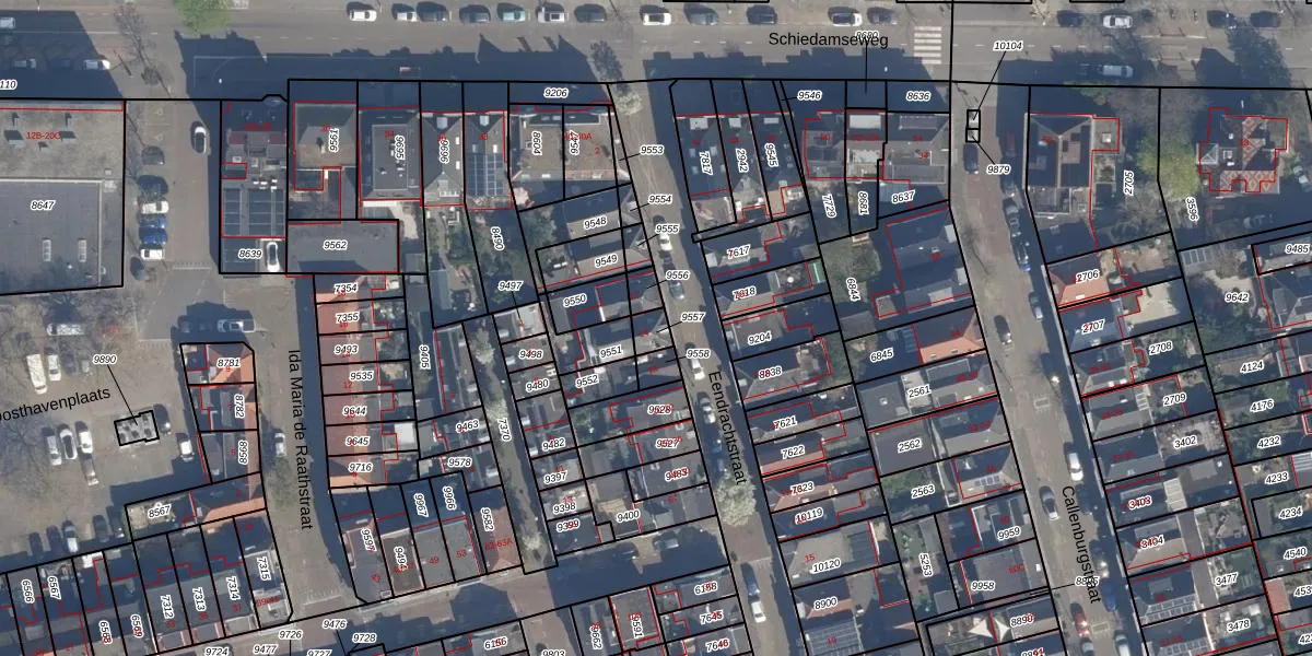 Eendrachtstraat 14 is gelegen op kadastraal perceel VDG00B9557. Deze kadastrale aanduiding is uniek en wordt gebruikt door het Kadaster om eigendomsrechten en andere zakelijke rechten vast te leggen. Het perceel maakt onderdeel uit van de kadastrale gemeente Vlaardingen.