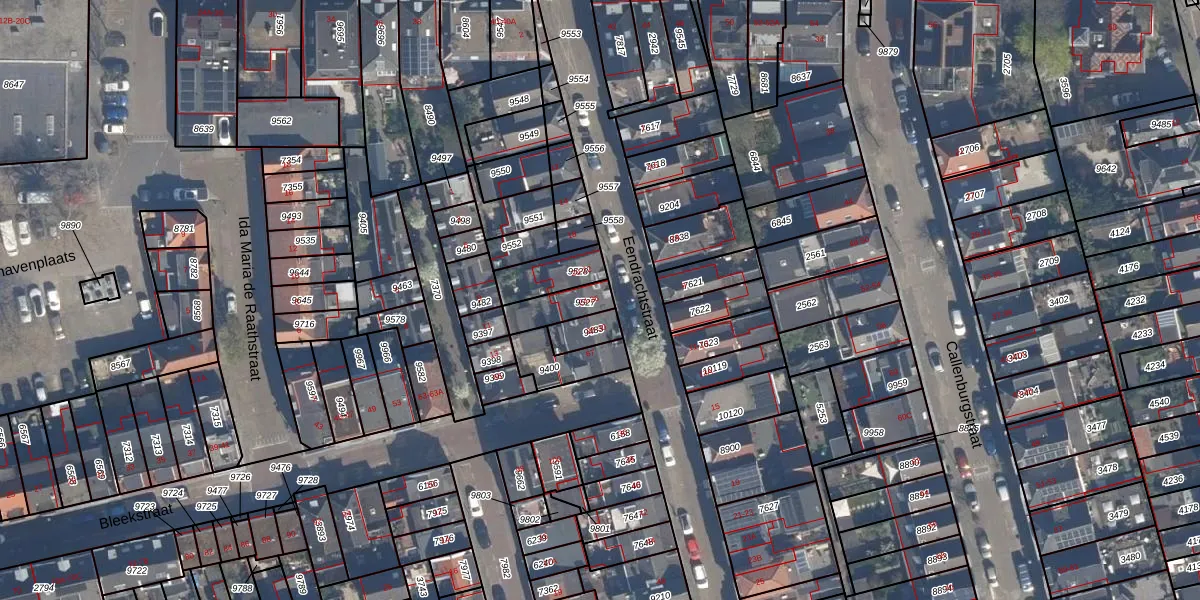 Het perceel waarop Eendrachtstraat 26 staat heeft een oppervlakte van 90 m². Dit is een klein perceel. De perceeloppervlakte wordt geregistreerd door het Kadaster. Gedetailleerde informatie over de maten van dit perceel kunt u vinden in het rapport Kadastrale kaart met maatvoering van Eendrachtstraat 26.
