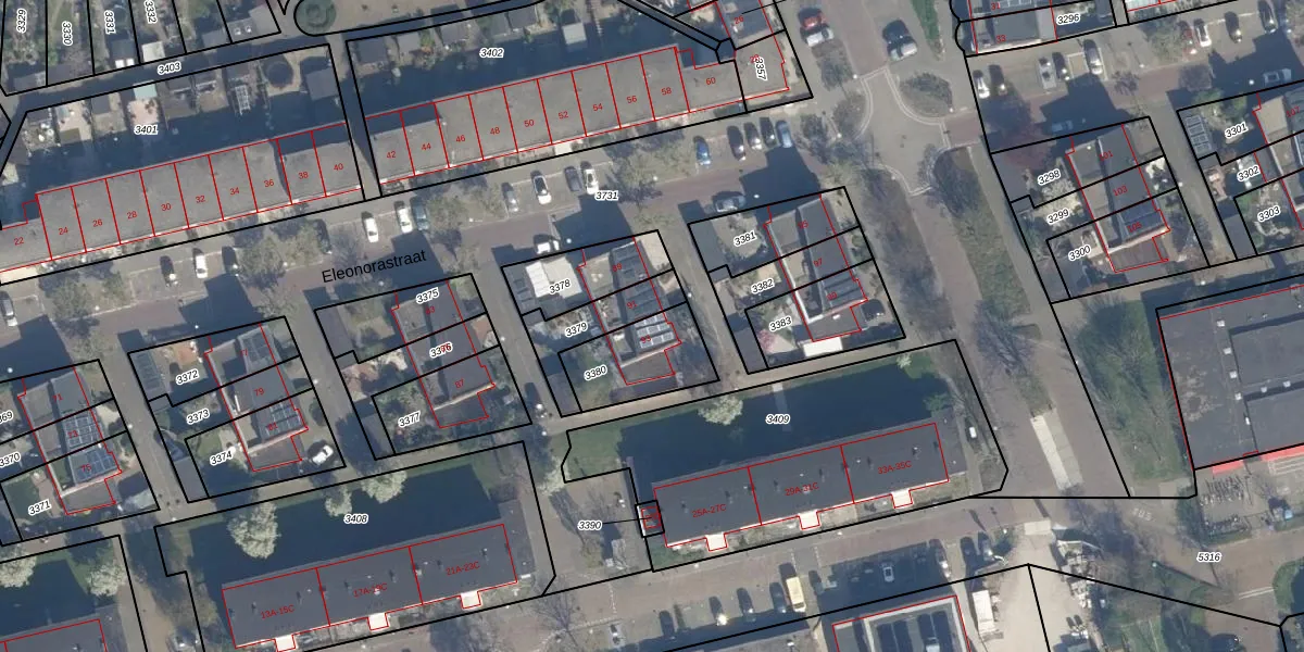 Eleonorastraat 93 is gelegen op kadastraal perceel VDG00G3380. Deze kadastrale aanduiding is uniek en wordt gebruikt door het Kadaster om eigendomsrechten en andere zakelijke rechten vast te leggen. Het perceel maakt onderdeel uit van de kadastrale gemeente Vlaardingen.