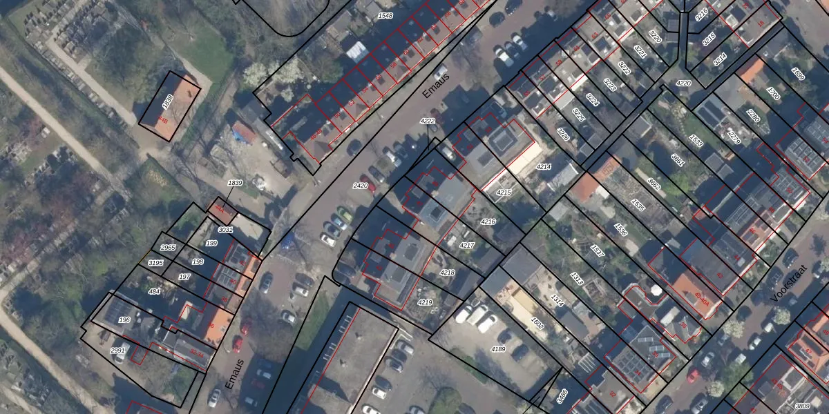 Emaus 47 is gelegen op kadastraal perceel VDG00G4217. Deze kadastrale aanduiding is uniek en wordt gebruikt door het Kadaster om eigendomsrechten en andere zakelijke rechten vast te leggen. Het perceel maakt onderdeel uit van de kadastrale gemeente Vlaardingen.