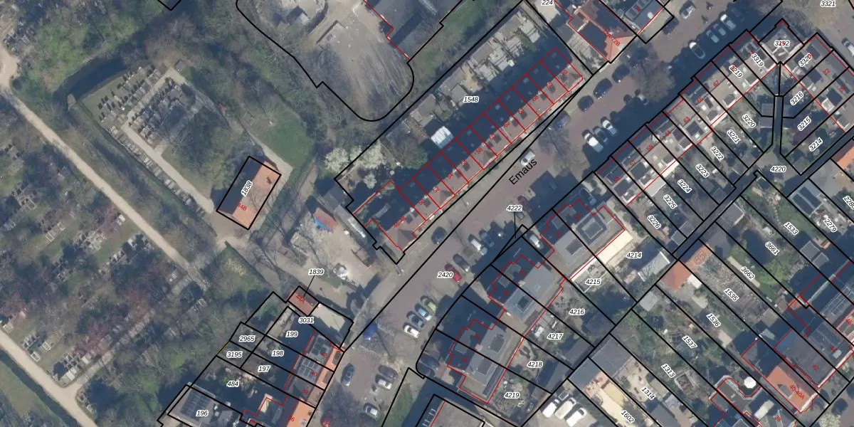 Emaus 50 is gelegen op kadastraal perceel VDG00M1548. Deze kadastrale aanduiding is uniek en wordt gebruikt door het Kadaster om eigendomsrechten en andere zakelijke rechten vast te leggen. Het perceel maakt onderdeel uit van de kadastrale gemeente Vlaardingen.