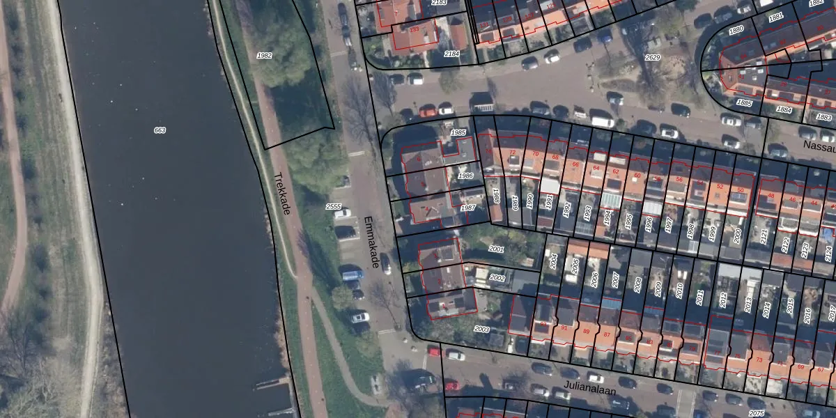 Het perceel waarop Emmakade 4 staat heeft een oppervlakte van 200 m². Dit is een middelgroot perceel. De perceeloppervlakte wordt geregistreerd door het Kadaster. Gedetailleerde informatie over de maten van dit perceel kunt u vinden in het rapport Kadastrale kaart met maatvoering van Emmakade 4.