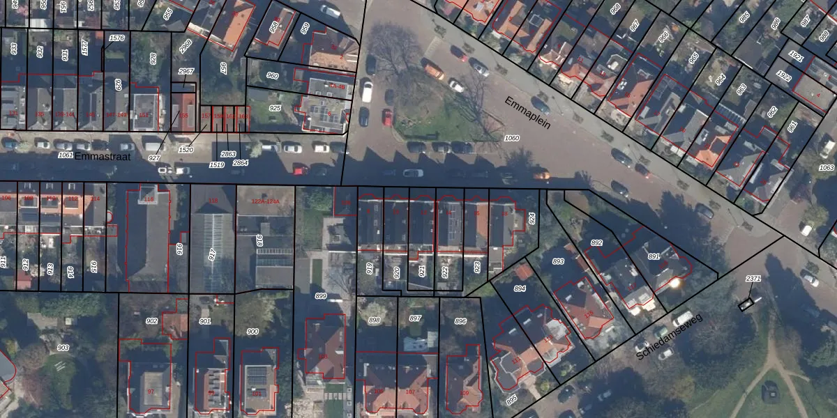 Het perceel waarop Emmaplein 12 staat heeft een oppervlakte van 167 m². Dit is een middelgroot perceel. De perceeloppervlakte wordt geregistreerd door het Kadaster. Gedetailleerde informatie over de maten van dit perceel kunt u vinden in het rapport Kadastrale kaart met maatvoering van Emmaplein 12.