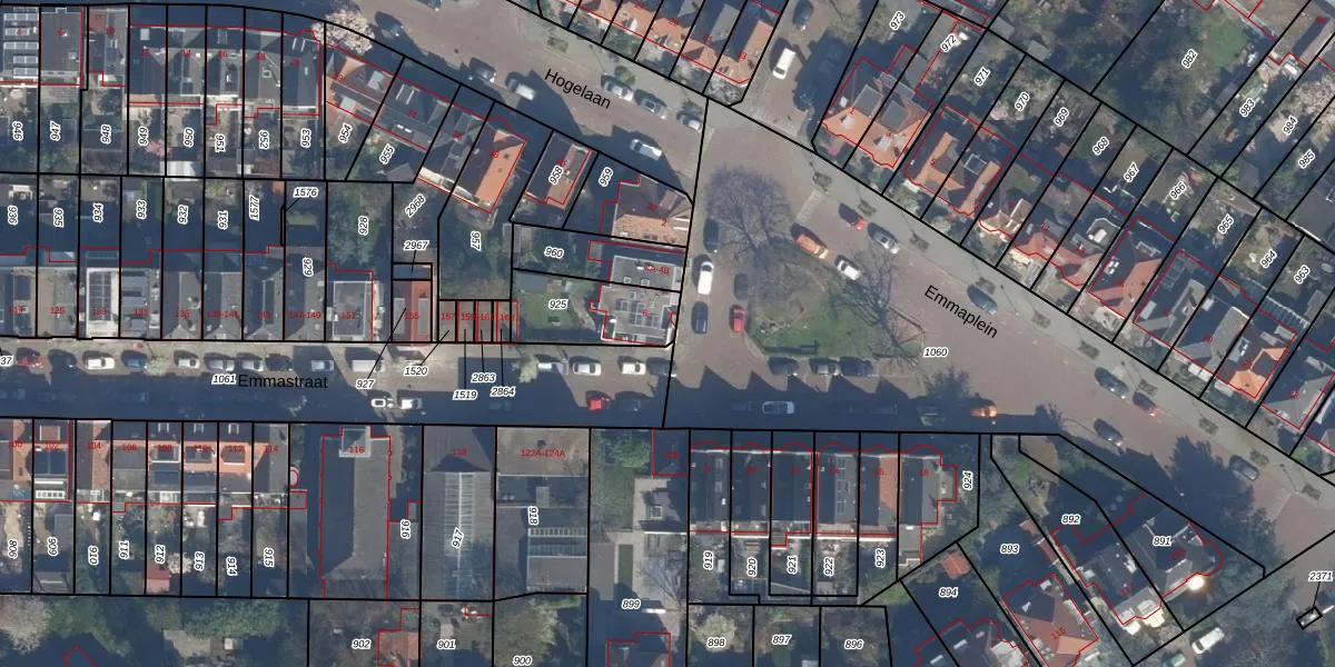 Het perceel waarop Emmaplein 6 staat heeft een oppervlakte van 224 m². Dit is een middelgroot perceel. De perceeloppervlakte wordt geregistreerd door het Kadaster. Gedetailleerde informatie over de maten van dit perceel kunt u vinden in het rapport Kadastrale kaart met maatvoering van Emmaplein 6.
