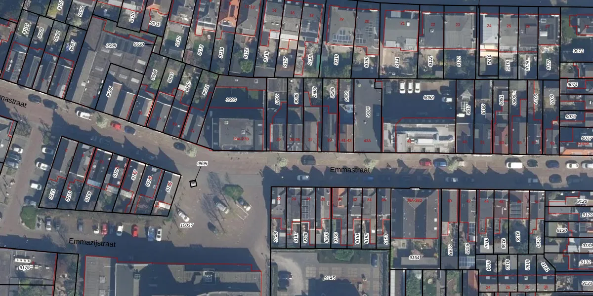 Emmastraat 35 is gelegen op kadastraal perceel VDG00B9088. Deze kadastrale aanduiding is uniek en wordt gebruikt door het Kadaster om eigendomsrechten en andere zakelijke rechten vast te leggen. Het perceel maakt onderdeel uit van de kadastrale gemeente Vlaardingen.