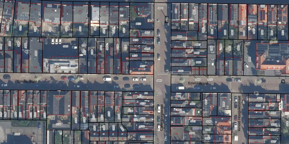 Het perceel waarop Emmastraat 63-A staat heeft een oppervlakte van 162 m². Dit is een middelgroot perceel. De perceeloppervlakte wordt geregistreerd door het Kadaster. Gedetailleerde informatie over de maten van dit perceel kunt u vinden in het rapport Kadastrale kaart met maatvoering van Emmastraat 63-A.