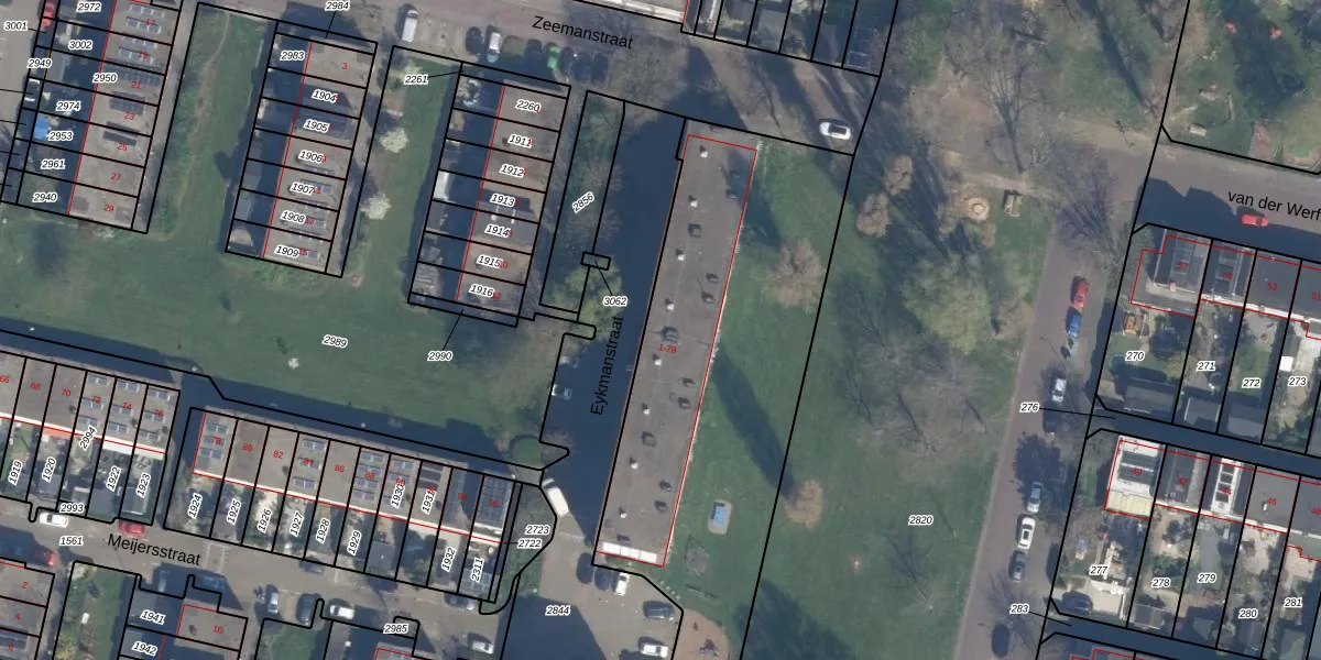 Het perceel waarop Eykmanstraat 35 staat heeft een oppervlakte van 3618 m². Dit is een zeer groot perceel. De perceeloppervlakte wordt geregistreerd door het Kadaster. Gedetailleerde informatie over de maten van dit perceel kunt u vinden in het rapport Kadastrale kaart met maatvoering van Eykmanstraat 35.