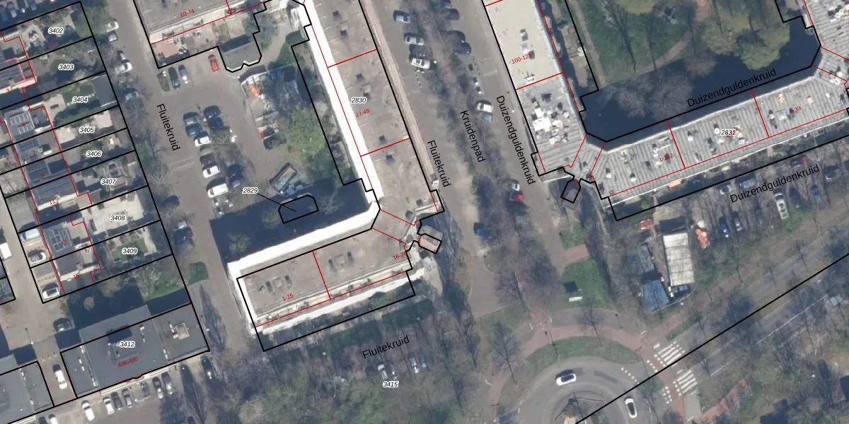 Het perceel waarop Fluitekruid 26 staat heeft een oppervlakte van 2532 m². Dit is een zeer groot perceel. De perceeloppervlakte wordt geregistreerd door het Kadaster. Gedetailleerde informatie over de maten van dit perceel kunt u vinden in het rapport Kadastrale kaart met maatvoering van Fluitekruid 26.