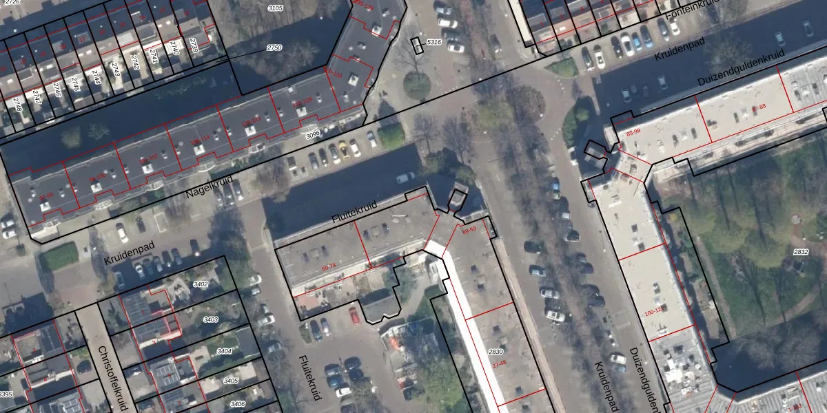 Fluitekruid 55 is gelegen op kadastraal perceel VDG00K2830. Deze kadastrale aanduiding is uniek en wordt gebruikt door het Kadaster om eigendomsrechten en andere zakelijke rechten vast te leggen. Het perceel maakt onderdeel uit van de kadastrale gemeente Vlaardingen.