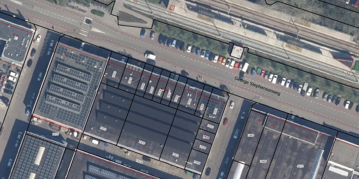 Het perceel waarop George Stephensonweg 21-E staat heeft een oppervlakte van 93 m². Dit is een klein perceel. De perceeloppervlakte wordt geregistreerd door het Kadaster. Gedetailleerde informatie over de maten van dit perceel kunt u vinden in het rapport Kadastrale kaart met maatvoering van George Stephensonweg 21-E.