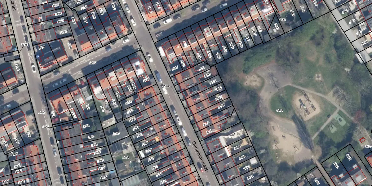 Geraniumstraat 21 is gelegen op kadastraal perceel VDG00G2021. Deze kadastrale aanduiding is uniek en wordt gebruikt door het Kadaster om eigendomsrechten en andere zakelijke rechten vast te leggen. Het perceel maakt onderdeel uit van de kadastrale gemeente Vlaardingen.