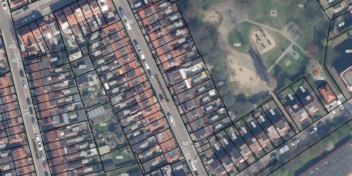 Geraniumstraat 35 is gelegen op kadastraal perceel VDG00G2408. Deze kadastrale aanduiding is uniek en wordt gebruikt door het Kadaster om eigendomsrechten en andere zakelijke rechten vast te leggen. Het perceel maakt onderdeel uit van de kadastrale gemeente Vlaardingen.