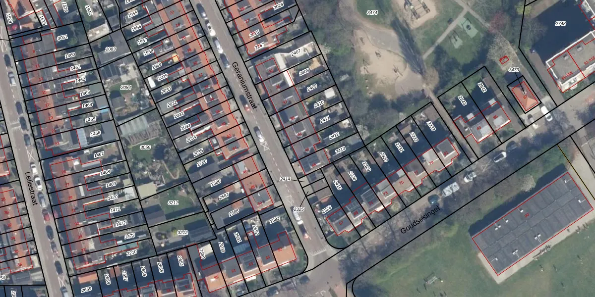 Geraniumstraat 43 is gelegen op kadastraal perceel VDG00G2412. Deze kadastrale aanduiding is uniek en wordt gebruikt door het Kadaster om eigendomsrechten en andere zakelijke rechten vast te leggen. Het perceel maakt onderdeel uit van de kadastrale gemeente Vlaardingen.