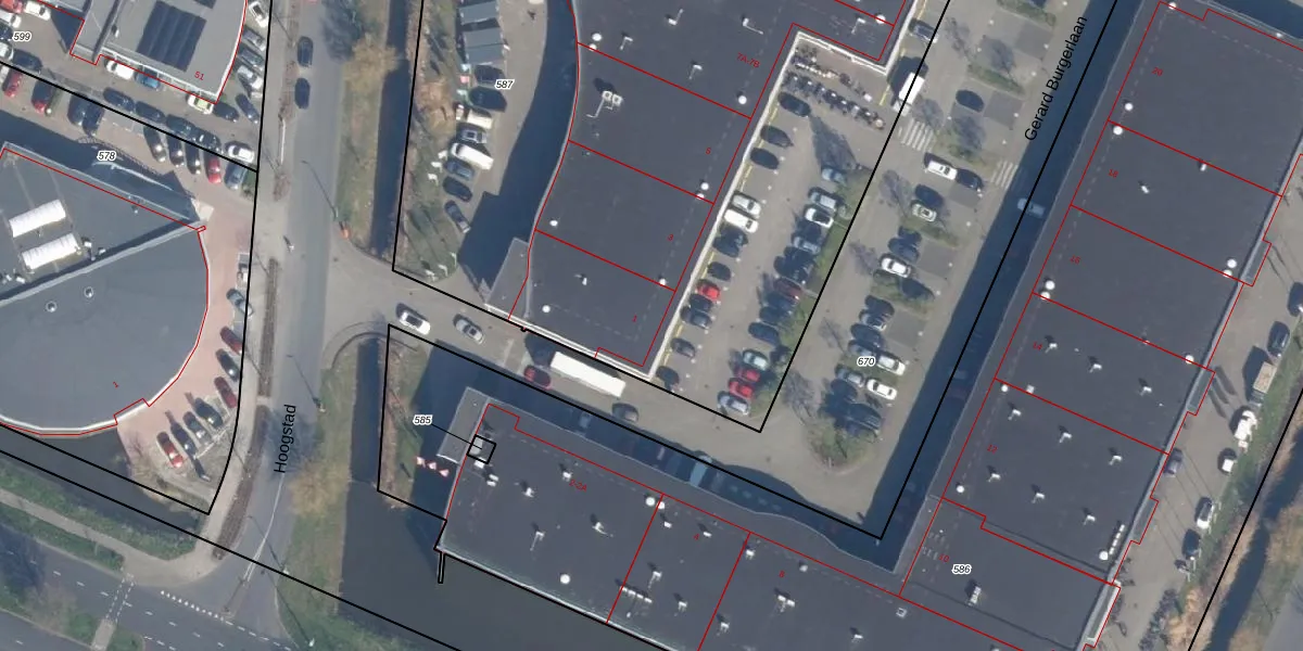 Gerard Burgerlaan 1 is gelegen op kadastraal perceel VDG00F587. Deze kadastrale aanduiding is uniek en wordt gebruikt door het Kadaster om eigendomsrechten en andere zakelijke rechten vast te leggen. Het perceel maakt onderdeel uit van de kadastrale gemeente Vlaardingen.