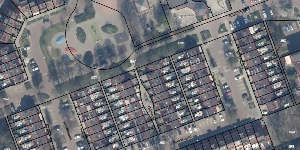 Gebruik de zoekbalk of klik op een perceel voor informatie over de adressen binnen dit perceel.