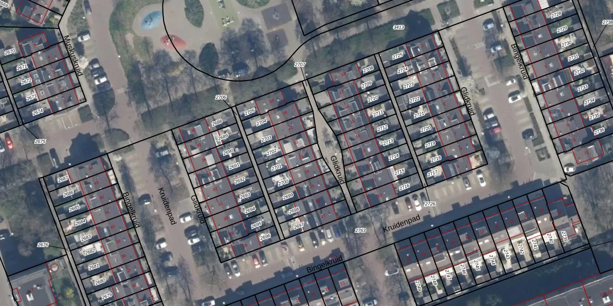 Het perceel waarop Glidkruid 23 staat heeft een oppervlakte van 106 m². Dit is een middelgroot perceel. De perceeloppervlakte wordt geregistreerd door het Kadaster. Gedetailleerde informatie over de maten van dit perceel kunt u vinden in het rapport Kadastrale kaart met maatvoering van Glidkruid 23.