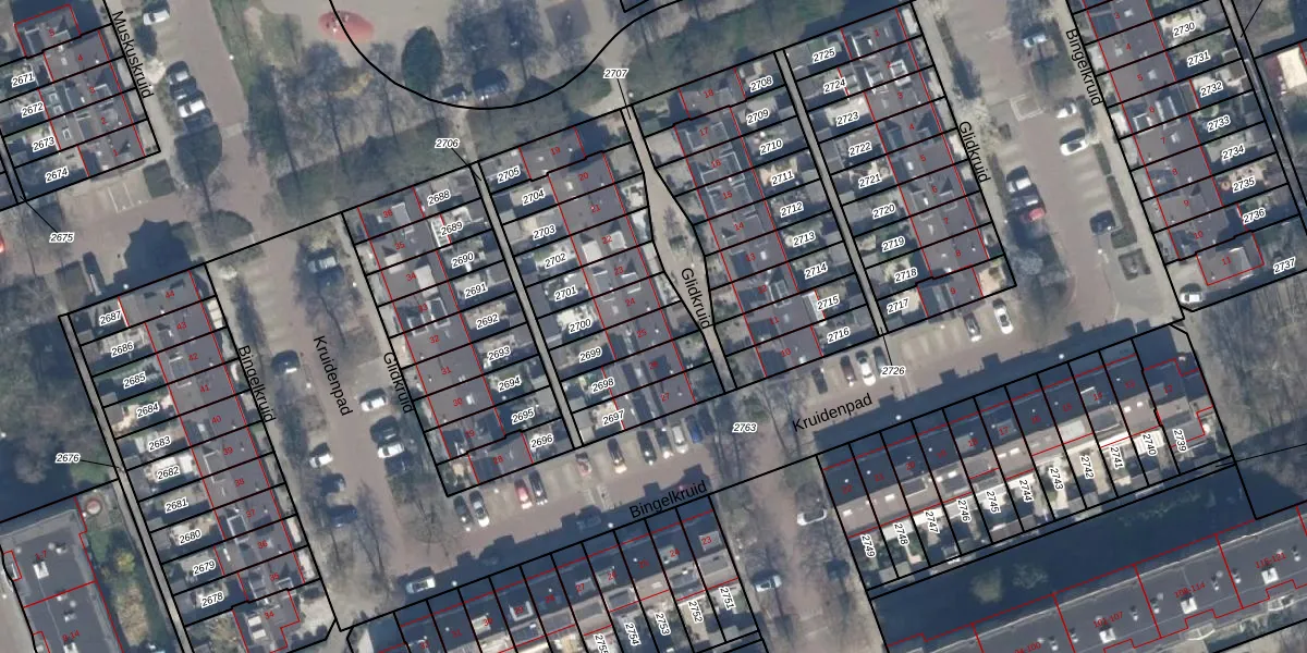 Het perceel waarop Glidkruid 25 staat heeft een oppervlakte van 115 m². Dit is een middelgroot perceel. De perceeloppervlakte wordt geregistreerd door het Kadaster. Gedetailleerde informatie over de maten van dit perceel kunt u vinden in het rapport Kadastrale kaart met maatvoering van Glidkruid 25.
