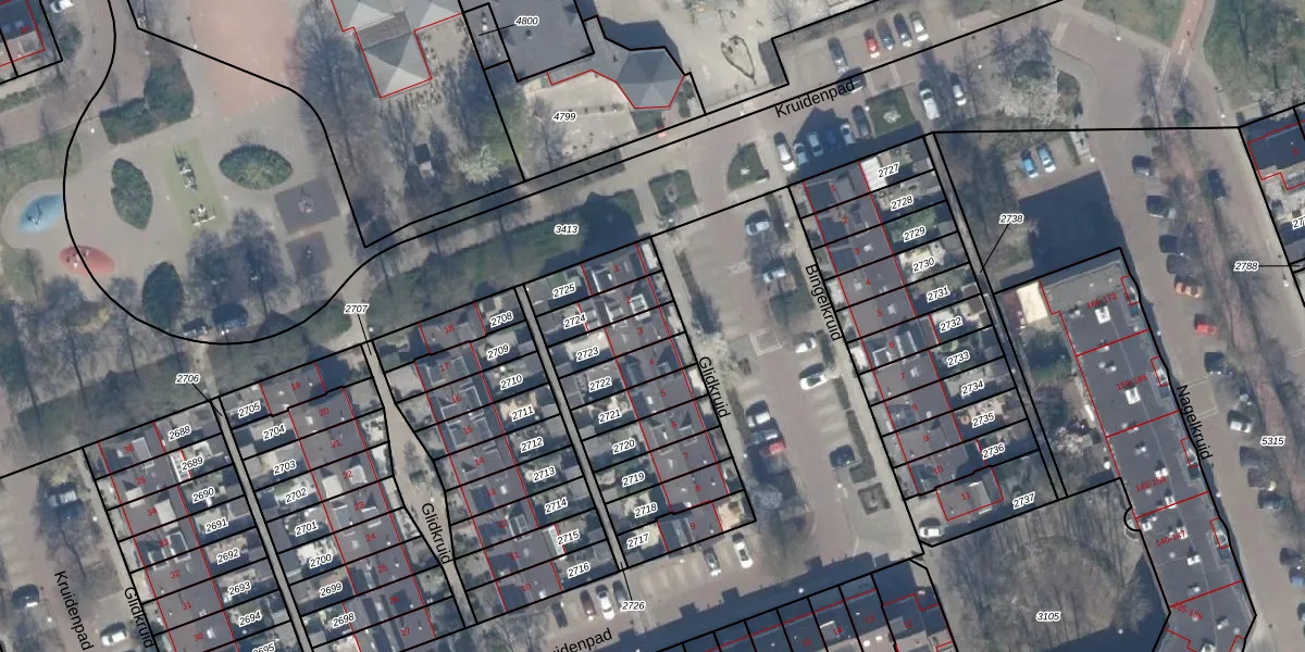 Gebruik de zoekbalk of klik op een perceel voor informatie over de adressen binnen dit perceel.