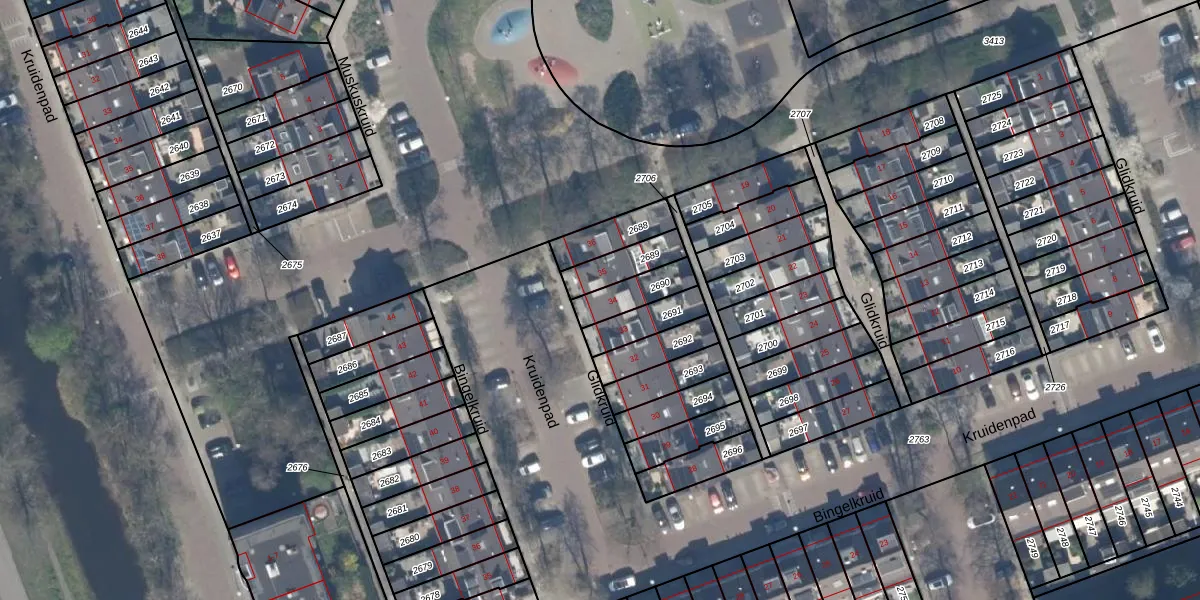 Het perceel waarop Glidkruid 34 staat heeft een oppervlakte van 106 m². Dit is een middelgroot perceel. De perceeloppervlakte wordt geregistreerd door het Kadaster. Gedetailleerde informatie over de maten van dit perceel kunt u vinden in het rapport Kadastrale kaart met maatvoering van Glidkruid 34.