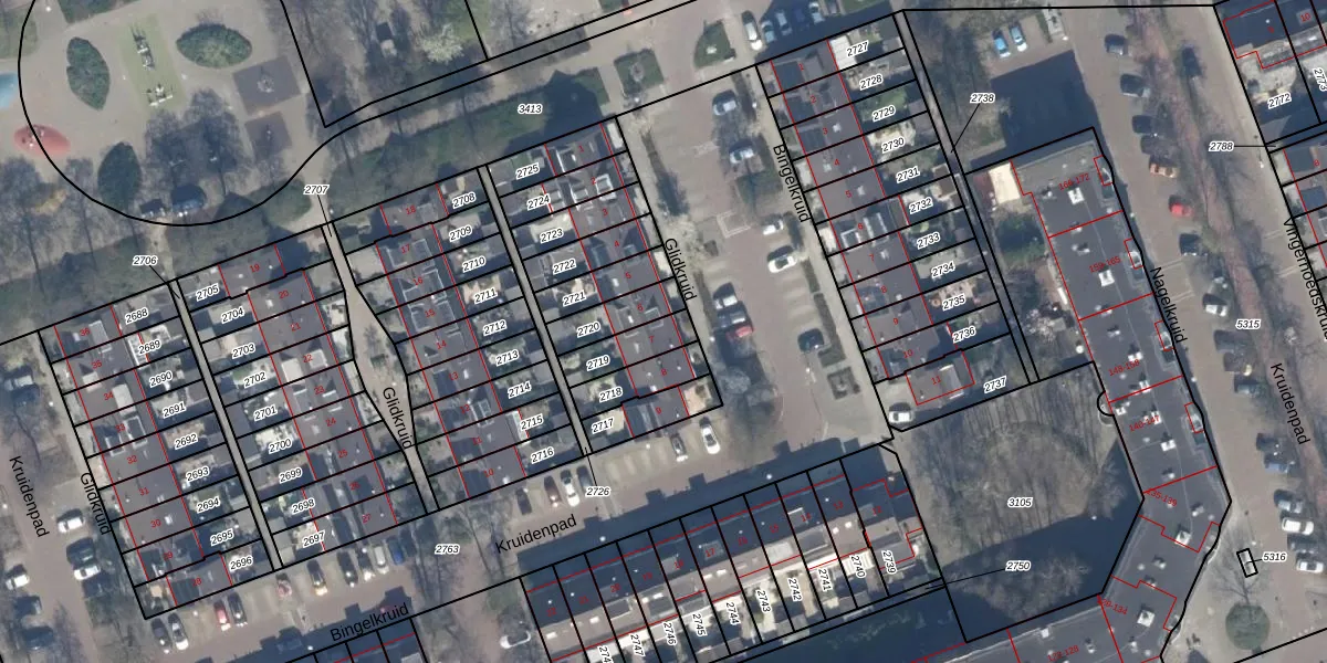 Het perceel waarop Glidkruid 7 staat heeft een oppervlakte van 106 m². Dit is een middelgroot perceel. De perceeloppervlakte wordt geregistreerd door het Kadaster. Gedetailleerde informatie over de maten van dit perceel kunt u vinden in het rapport Kadastrale kaart met maatvoering van Glidkruid 7.