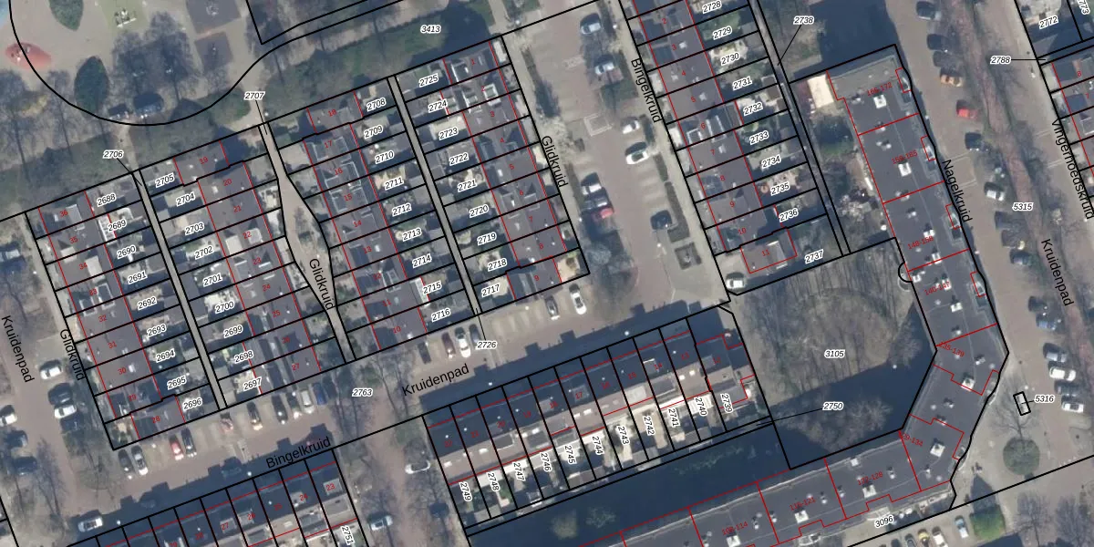 Het perceel waarop Glidkruid 9 staat heeft een oppervlakte van 111 m². Dit is een middelgroot perceel. De perceeloppervlakte wordt geregistreerd door het Kadaster. Gedetailleerde informatie over de maten van dit perceel kunt u vinden in het rapport Kadastrale kaart met maatvoering van Glidkruid 9.