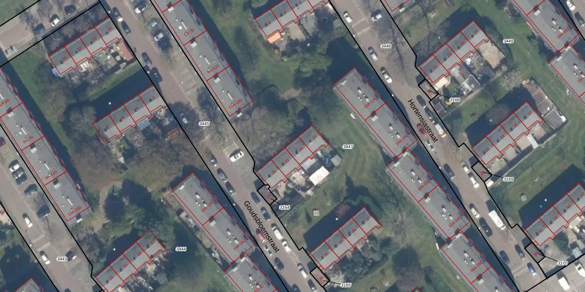 Het perceel waarop Goudsbloemstraat 25 staat heeft een oppervlakte van 8653 m². Dit is een zeer groot perceel. De perceeloppervlakte wordt geregistreerd door het Kadaster. Gedetailleerde informatie over de maten van dit perceel kunt u vinden in het rapport Kadastrale kaart met maatvoering van Goudsbloemstraat 25.