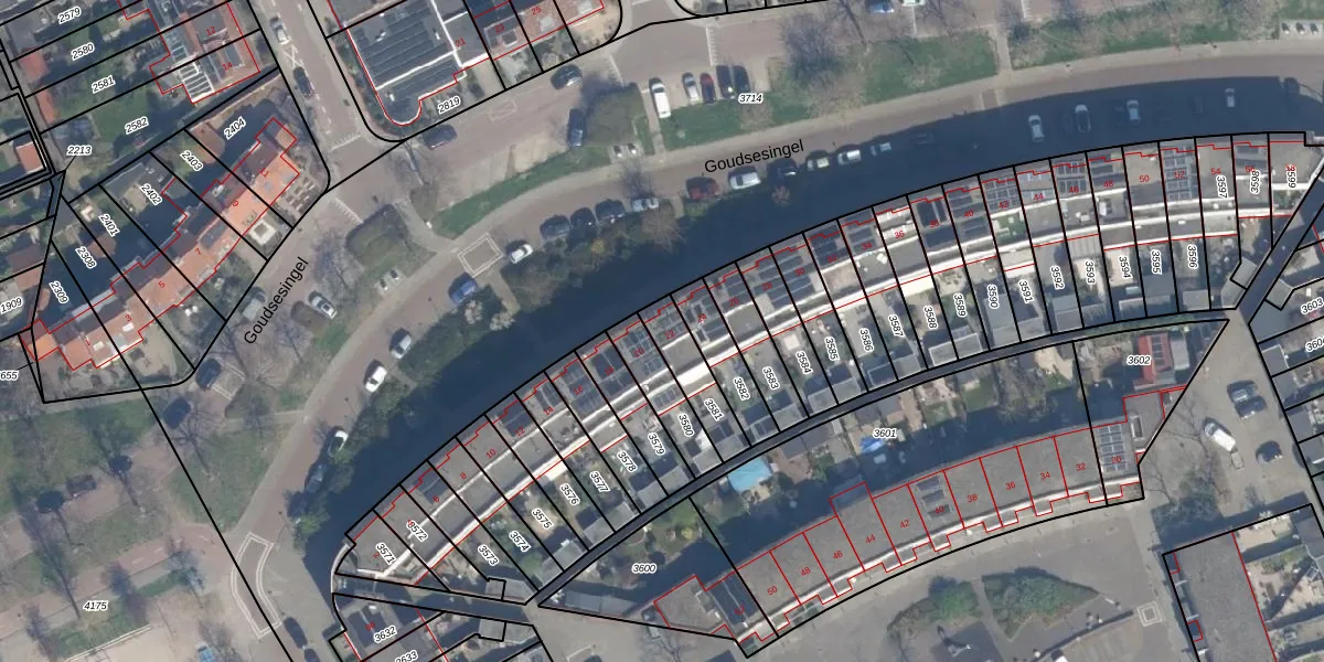 Goudsesingel 22 is gelegen op kadastraal perceel VDG00G3581. Deze kadastrale aanduiding is uniek en wordt gebruikt door het Kadaster om eigendomsrechten en andere zakelijke rechten vast te leggen. Het perceel maakt onderdeel uit van de kadastrale gemeente Vlaardingen.