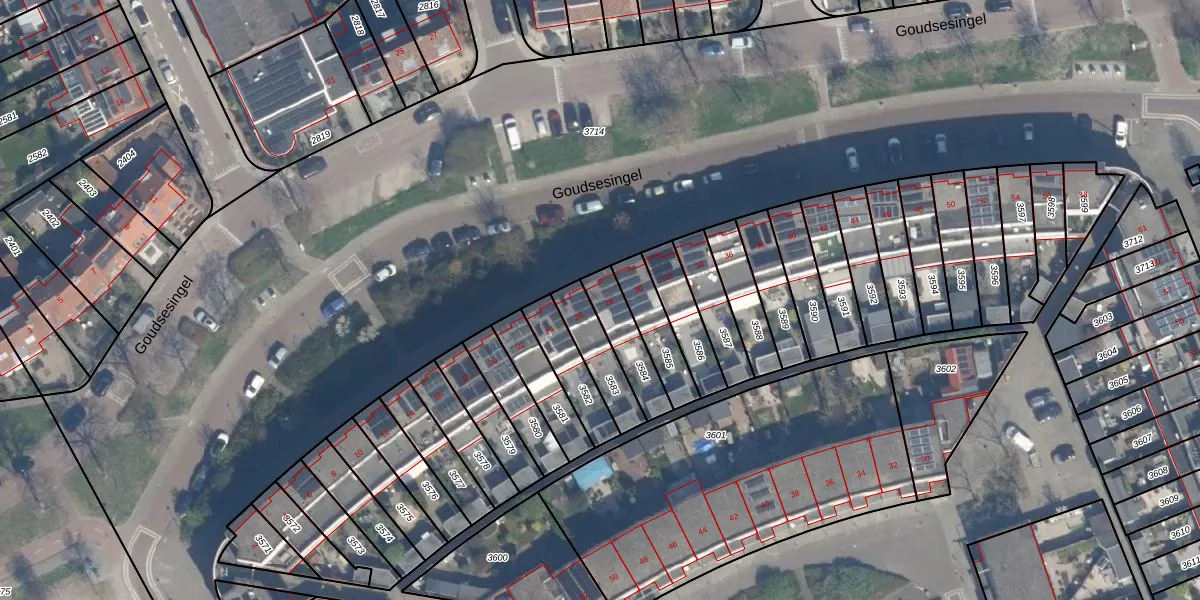 Goudsesingel 28 is gelegen op kadastraal perceel VDG00G3584. Deze kadastrale aanduiding is uniek en wordt gebruikt door het Kadaster om eigendomsrechten en andere zakelijke rechten vast te leggen. Het perceel maakt onderdeel uit van de kadastrale gemeente Vlaardingen.