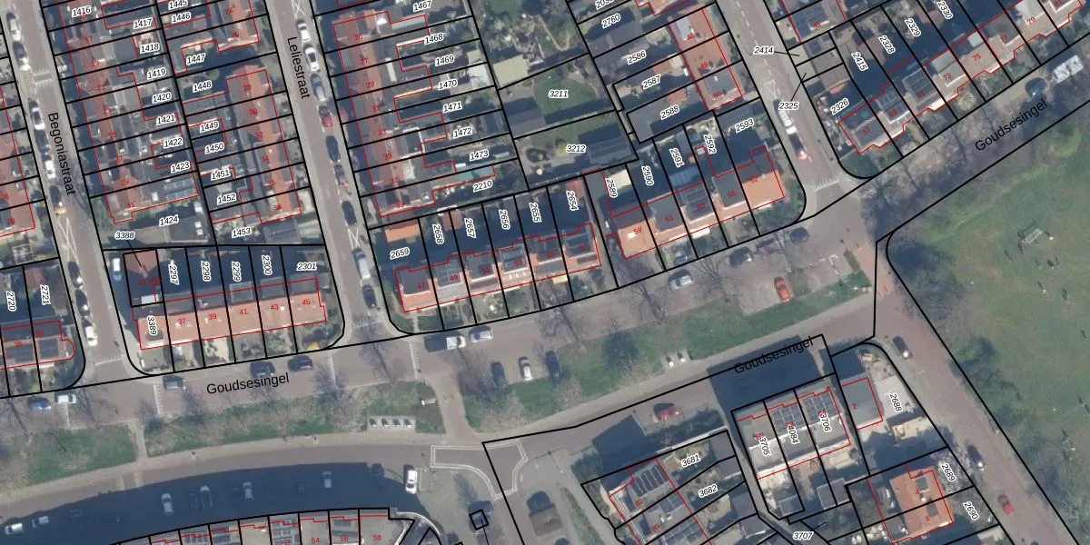 Goudsesingel 55 is gelegen op kadastraal perceel VDG00G2655. Deze kadastrale aanduiding is uniek en wordt gebruikt door het Kadaster om eigendomsrechten en andere zakelijke rechten vast te leggen. Het perceel maakt onderdeel uit van de kadastrale gemeente Vlaardingen.