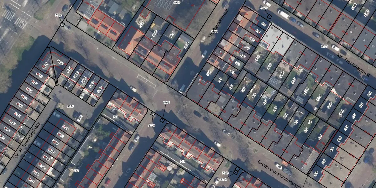 Groen van Prinstererstraat 1 is gelegen op kadastraal perceel VDG00D914. Deze kadastrale aanduiding is uniek en wordt gebruikt door het Kadaster om eigendomsrechten en andere zakelijke rechten vast te leggen. Het perceel maakt onderdeel uit van de kadastrale gemeente Vlaardingen.