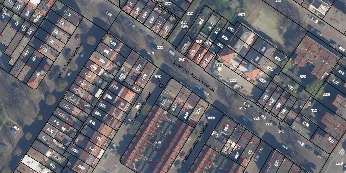 Groen van Prinstererstraat 142 is gelegen op kadastraal perceel VDG00D2488. Deze kadastrale aanduiding is uniek en wordt gebruikt door het Kadaster om eigendomsrechten en andere zakelijke rechten vast te leggen. Het perceel maakt onderdeel uit van de kadastrale gemeente Vlaardingen.