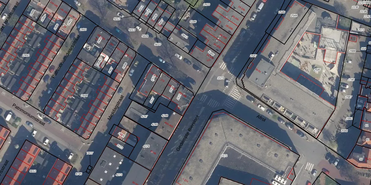 Het perceel waarop het adres ligt is VDG00-D-2519. De afkorting 'VDG00' staat voor kadastrale gemeente Vlaardingen. Het perceel is 135 m² groot. Dat is kleiner dan de gemiddelde perceeloppervlakte in Vlaardingen, dat op 1372,24 m² ligt. Het grootste perceel in de kadastrale gemeente is 1,02 km². Het kleinste perceel heeft een oppervlakte van 0 m². Er zijn 4 adressen aanwezig op het perceel. De laatste wijziging in het de Basisregistratie Kadaster (BRK) was op 09-03-2009.