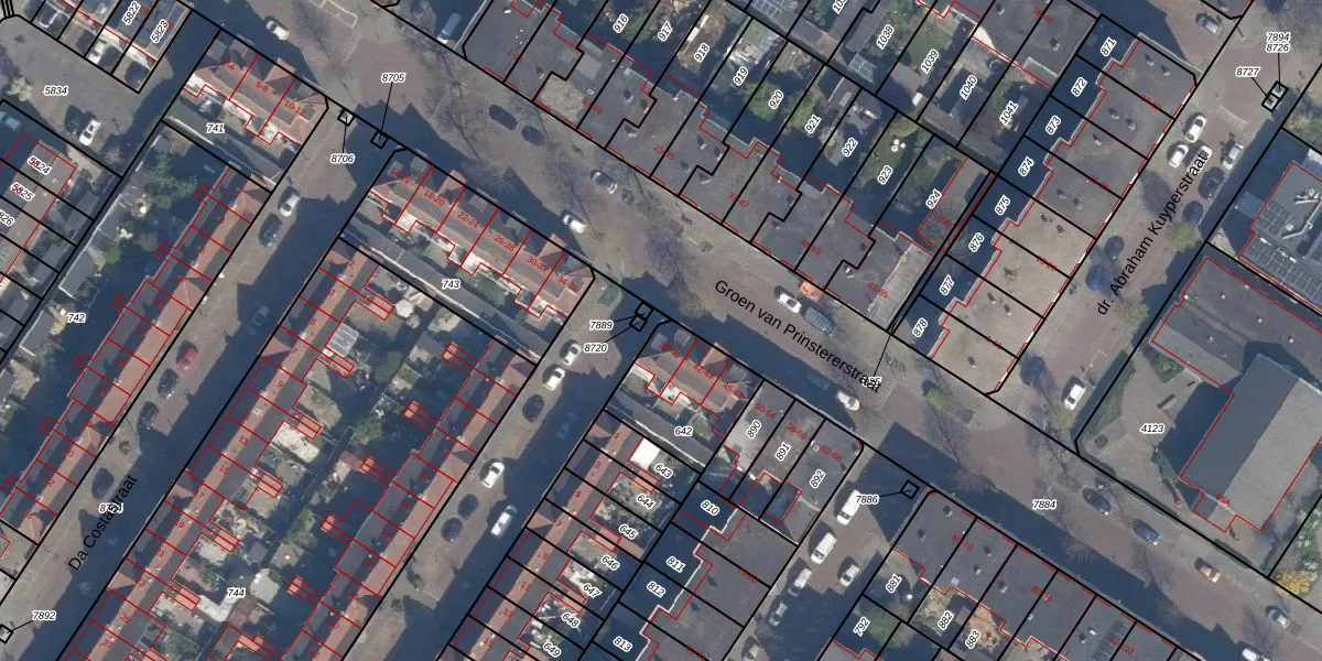 Het perceel waarop Groen van Prinstererstraat 38 staat heeft een oppervlakte van 309 m². Dit is een groot perceel. De perceeloppervlakte wordt geregistreerd door het Kadaster. Gedetailleerde informatie over de maten van dit perceel kunt u vinden in het rapport Kadastrale kaart met maatvoering van Groen van Prinstererstraat 38.