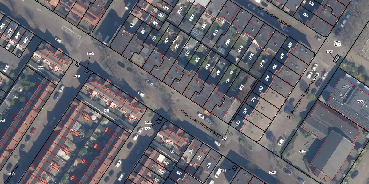 Groen van Prinstererstraat 43 is gelegen op kadastraal perceel VDG00D921. Deze kadastrale aanduiding is uniek en wordt gebruikt door het Kadaster om eigendomsrechten en andere zakelijke rechten vast te leggen. Het perceel maakt onderdeel uit van de kadastrale gemeente Vlaardingen.