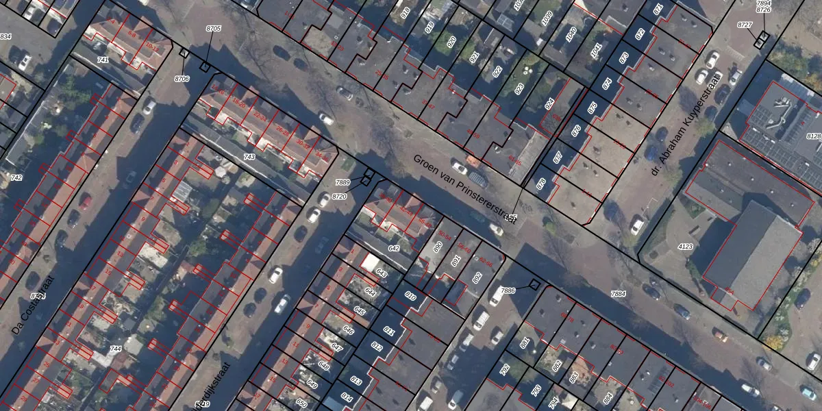 Groen van Prinstererstraat 44 is gelegen op kadastraal perceel VDG00D642. Deze kadastrale aanduiding is uniek en wordt gebruikt door het Kadaster om eigendomsrechten en andere zakelijke rechten vast te leggen. Het perceel maakt onderdeel uit van de kadastrale gemeente Vlaardingen.