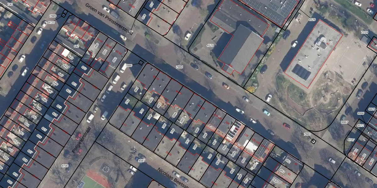 Groen van Prinstererstraat 88 is gelegen op kadastraal perceel VDG00D884. Deze kadastrale aanduiding is uniek en wordt gebruikt door het Kadaster om eigendomsrechten en andere zakelijke rechten vast te leggen. Het perceel maakt onderdeel uit van de kadastrale gemeente Vlaardingen.