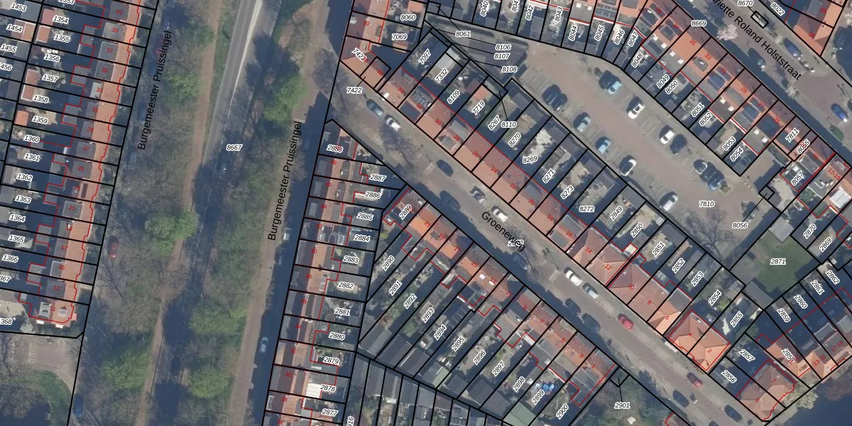 Gebruik de zoekbalk of klik op een perceel voor informatie over de adressen binnen dit perceel.