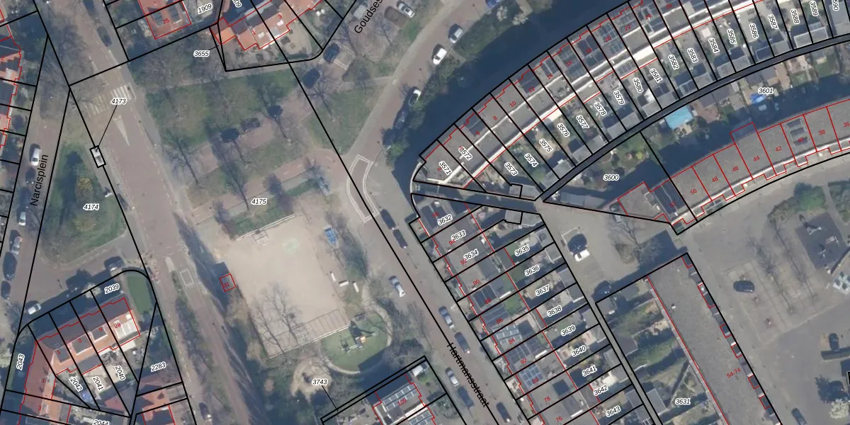 Het adres ligt op het perceel VDG00-G-3632, dat zich in de kadastrale gemeente Vlaardingen bevindt. Het perceel is kleiner dan gemiddeld in Vlaardingen. Het perceel is 99 m² groot, terwijl het gemiddelde ligt op 1372,24 m². Het grootste perceel in de kadastrale gemeente is 1,02 km². Het kleinste perceel heeft een oppervlakte van 0 m². Dit is het enige adres dat aanwezig is op het perceel. In de Basisregistratie Kadaster (BRK) werden de grenzen van het perceel geregistreerd op 08-12-2011.
