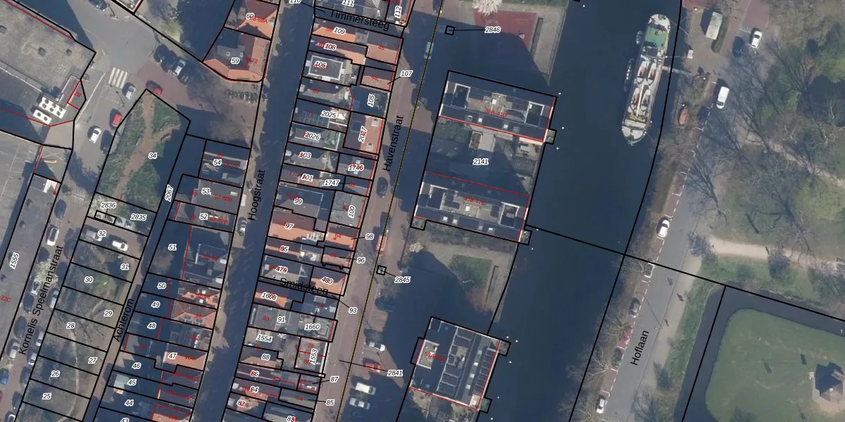 Het perceel waarop Havenstraat 45-a staat heeft een oppervlakte van 961 m². Dit is een groot perceel. De perceeloppervlakte wordt geregistreerd door het Kadaster. Gedetailleerde informatie over de maten van dit perceel kunt u vinden in het rapport Kadastrale kaart met maatvoering van Havenstraat 45-a.