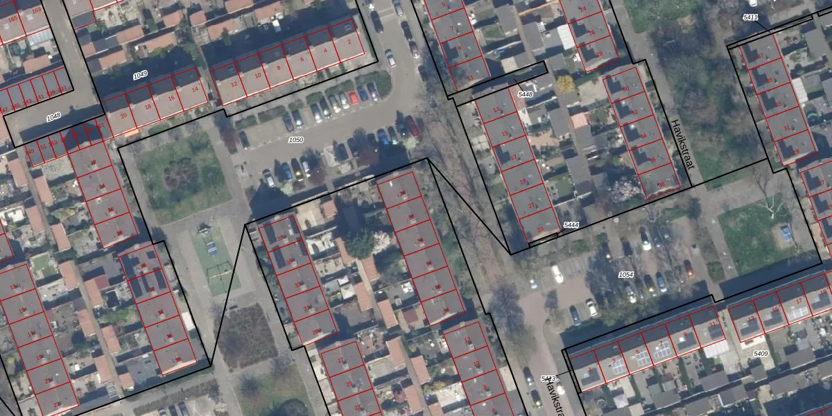 Het perceel waarop Havikstraat 22 staat heeft een oppervlakte van 7234 m². Dit is een zeer groot perceel. De perceeloppervlakte wordt geregistreerd door het Kadaster. Gedetailleerde informatie over de maten van dit perceel kunt u vinden in het rapport Kadastrale kaart met maatvoering van Havikstraat 22.