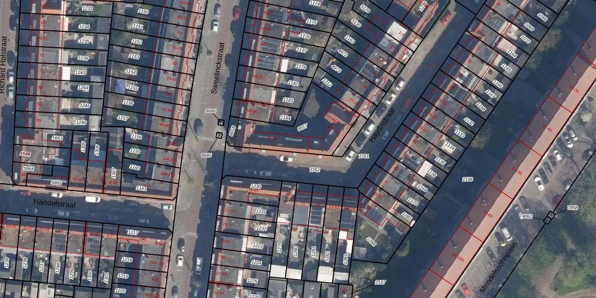 Het perceel waarop het adres ligt is VDG00-D-8917. De afkorting 'VDG00' staat voor kadastrale gemeente Vlaardingen. De gemiddelde perceelgrootte in Vlaardingen is 1372,52 m². Dit perceel is kleiner: de perceeloppervlakte bedraagt 522 m². De grootste perceeloppervlakte in de kadastrale gemeente is 1,02 km². De kleinste oppervlakte bedraagt 0 m². Er zijn 10 adressen aanwezig op het perceel. De huidige grenzen van het perceel zijn digitaal in de Basisregistratie Kadaster (BRK) geregistreerd op 31-10-2019.