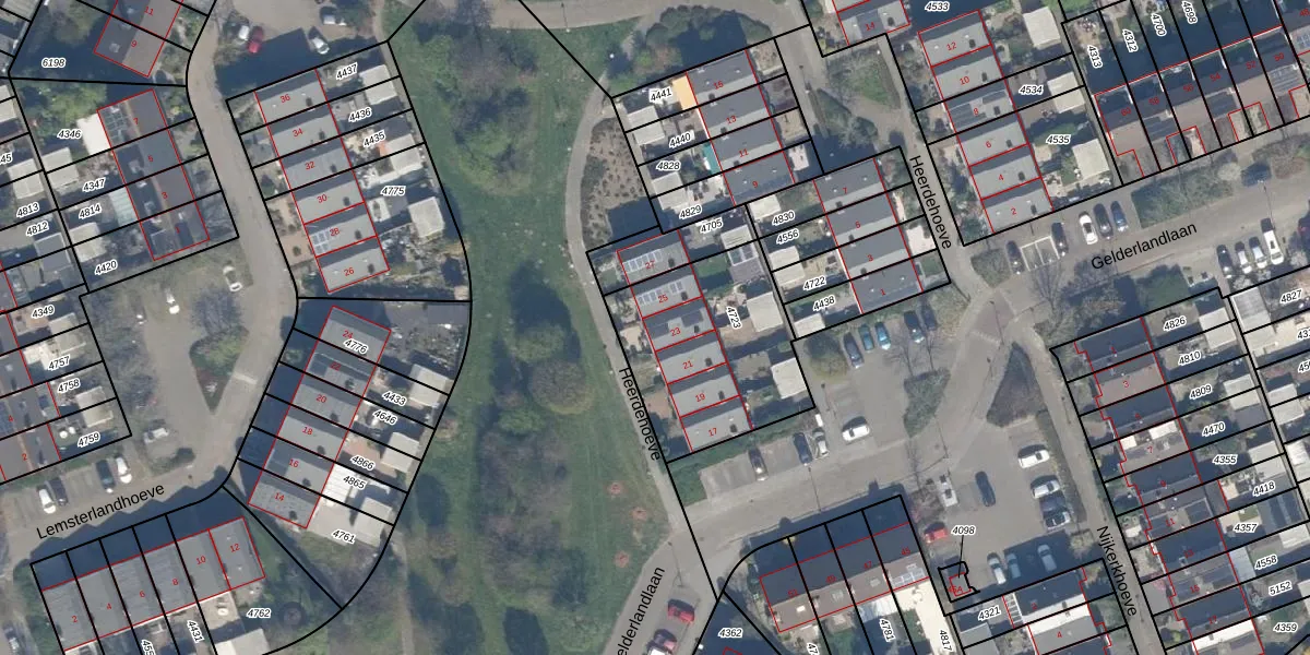 Het perceel waarop Heerdehoeve 23 staat heeft een oppervlakte van 676 m². Dit is een groot perceel. De perceeloppervlakte wordt geregistreerd door het Kadaster. Gedetailleerde informatie over de maten van dit perceel kunt u vinden in het rapport Kadastrale kaart met maatvoering van Heerdehoeve 23.