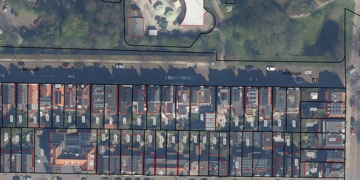 Hofsingel 56 is gelegen op kadastraal perceel VDG00B8976. Deze kadastrale aanduiding is uniek en wordt gebruikt door het Kadaster om eigendomsrechten en andere zakelijke rechten vast te leggen. Het perceel maakt onderdeel uit van de kadastrale gemeente Vlaardingen.