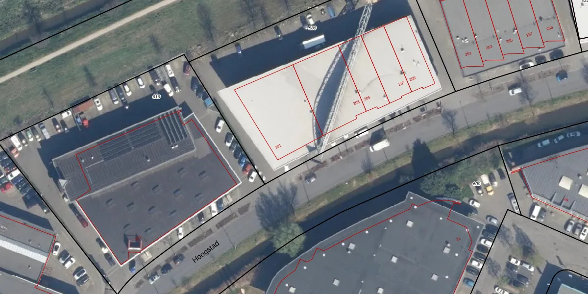 Het perceel waarop Hoogstad 201 staat heeft een oppervlakte van 3500 m². Dit is een zeer groot perceel. De perceeloppervlakte wordt geregistreerd door het Kadaster. Gedetailleerde informatie over de maten van dit perceel kunt u vinden in het rapport Kadastrale kaart met maatvoering van Hoogstad 201.