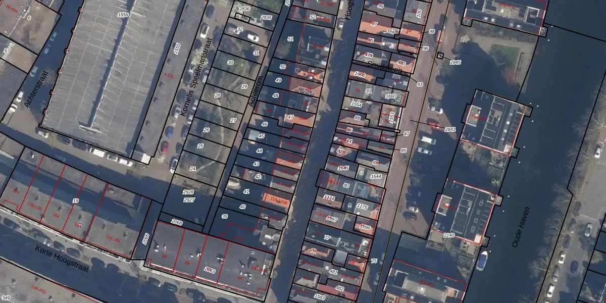 Het perceel waarop Hoogstraat 106-D staat heeft een oppervlakte van 86 m². Dit is een klein perceel. De perceeloppervlakte wordt geregistreerd door het Kadaster. Gedetailleerde informatie over de maten van dit perceel kunt u vinden in het rapport Kadastrale kaart met maatvoering van Hoogstraat 106-D.