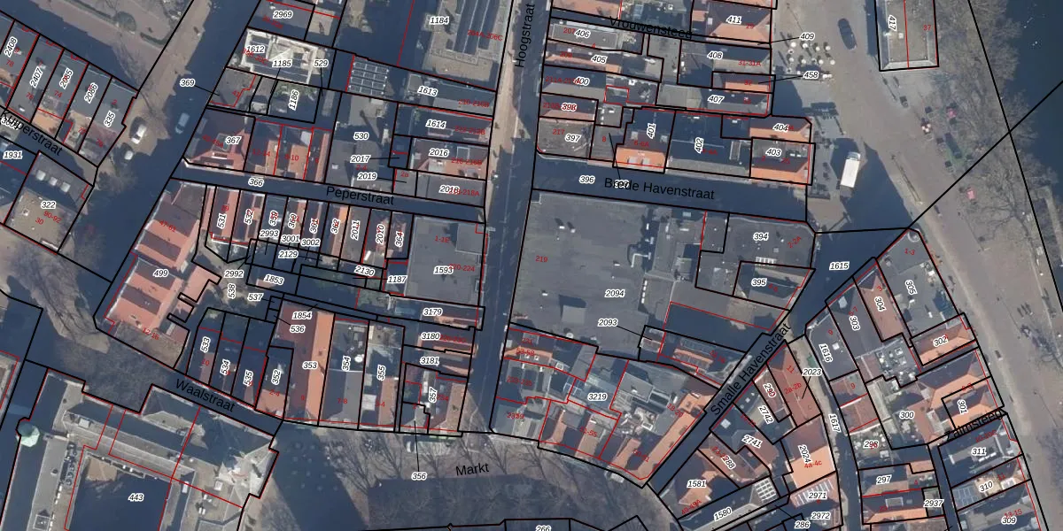 Het perceel waarop Hoogstraat 219 staat heeft een oppervlakte van 1063 m². Dit is een zeer groot perceel. De perceeloppervlakte wordt geregistreerd door het Kadaster. Gedetailleerde informatie over de maten van dit perceel kunt u vinden in het rapport Kadastrale kaart met maatvoering van Hoogstraat 219.