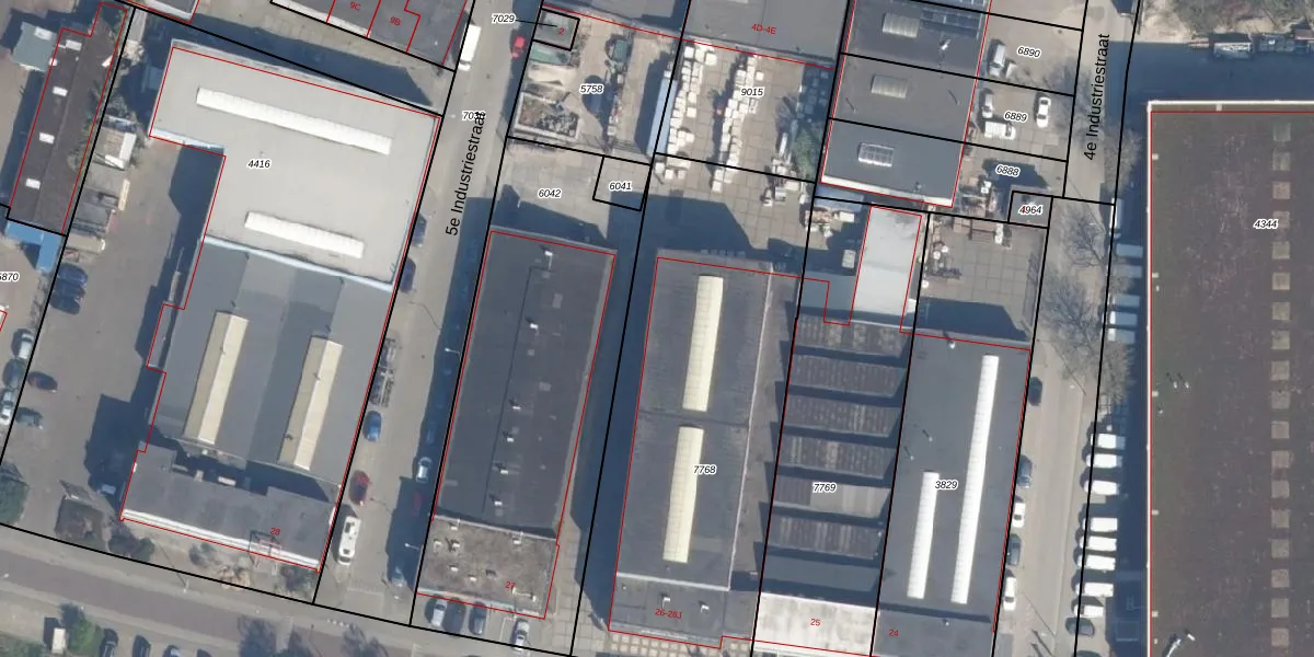 Industrieweg 26-F is gelegen op kadastraal perceel VDG00D7768. Deze kadastrale aanduiding is uniek en wordt gebruikt door het Kadaster om eigendomsrechten en andere zakelijke rechten vast te leggen. Het perceel maakt onderdeel uit van de kadastrale gemeente Vlaardingen.