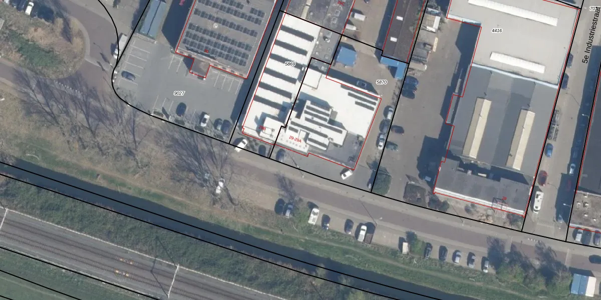Industrieweg 29 is gelegen op kadastraal perceel VDG00D5870. Deze kadastrale aanduiding is uniek en wordt gebruikt door het Kadaster om eigendomsrechten en andere zakelijke rechten vast te leggen. Het perceel maakt onderdeel uit van de kadastrale gemeente Vlaardingen.