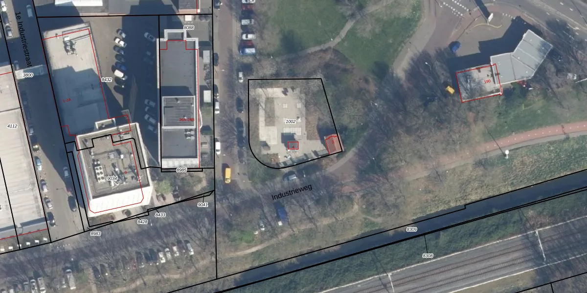 Het perceel waarop Industrieweg 4 staat heeft een oppervlakte van 808 m². Dit is een groot perceel. De perceeloppervlakte wordt geregistreerd door het Kadaster. Gedetailleerde informatie over de maten van dit perceel kunt u vinden in het rapport Kadastrale kaart met maatvoering van Industrieweg 4.
